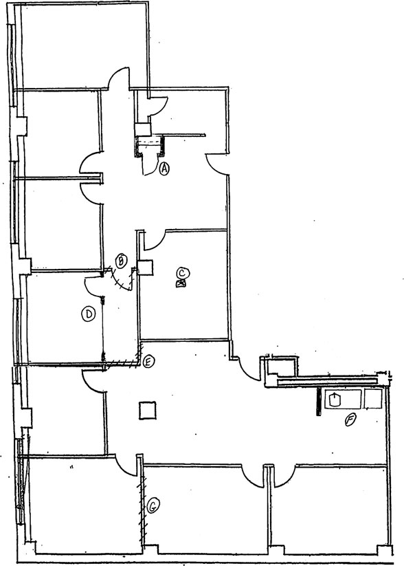 | 2. | Remove door and side walls to make connection to the Additional Premises at location "B." |
