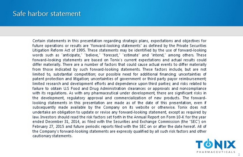 NASDAQ: TNXP March 2015 © 2015 Tonix Pharmaceuticals Holding Corp.