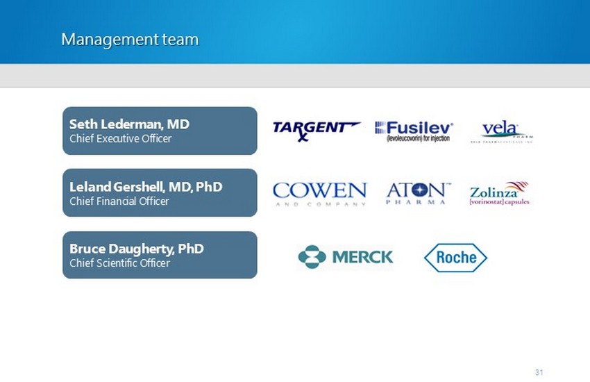 Bruce Daugherty, PhD Chief Scientific Officer Seth Lederman, MD Chief Executive Officer Management team Leland Gershell, MD, PhD Chief Financial Officer 31