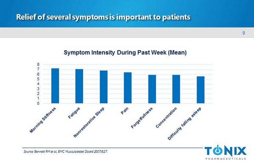 9 0 1 2 3 4 5 6 7 8 Symptom Intensity During Past Week (Mean ) Relief of several symptoms is important to patients Source: Bennett RM et al, BMC Musculoskelet Disord 2007;8:27.