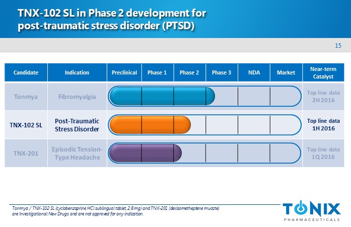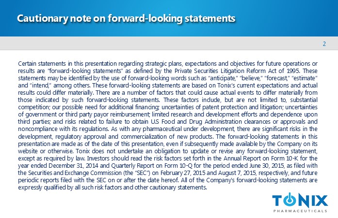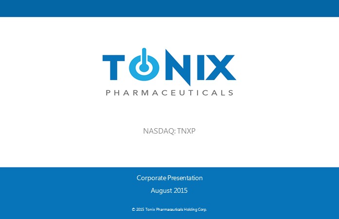NASDAQ: TNXP Corporate Presentation August 2015 © 2015 Tonix Pharmaceuticals Holding Corp.