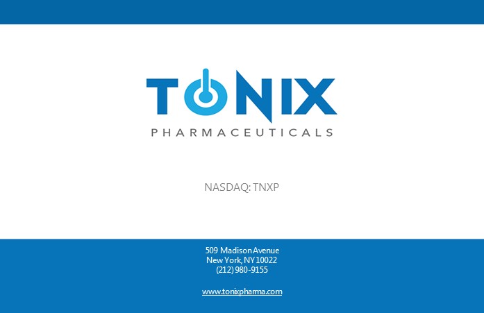 NASDAQ: TNXP 509 Madison Avenue New York, NY 10022 (212) 980 - 9155 www.tonixpharma.com