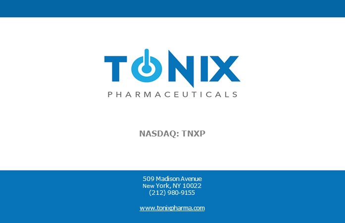 © Copyright 2016 Tonix Pharmaceuticals - Confidential - Do not duplicate or distribute NASDAQ: TNXP 509 Madison Avenue New York, NY 10022 (212) 980 - 9155 www.tonixpharma.com
