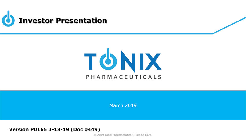 Investor Presentation March 2019 Version P0165 3-18-19 (Doc 0449) © 2019 Tonix Pharmaceuticals Holding Corp.