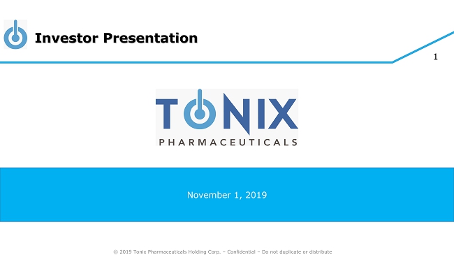 © 2019 Tonix Pharmaceuticals Holding Corp. – Confidential – Do not duplicate or distribute 1 November 1, 2019 Investor Presentation