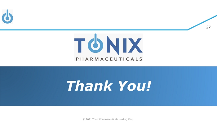 © 2021 Tonix Pharmaceuticals Holding Corp. 27 Thank You!