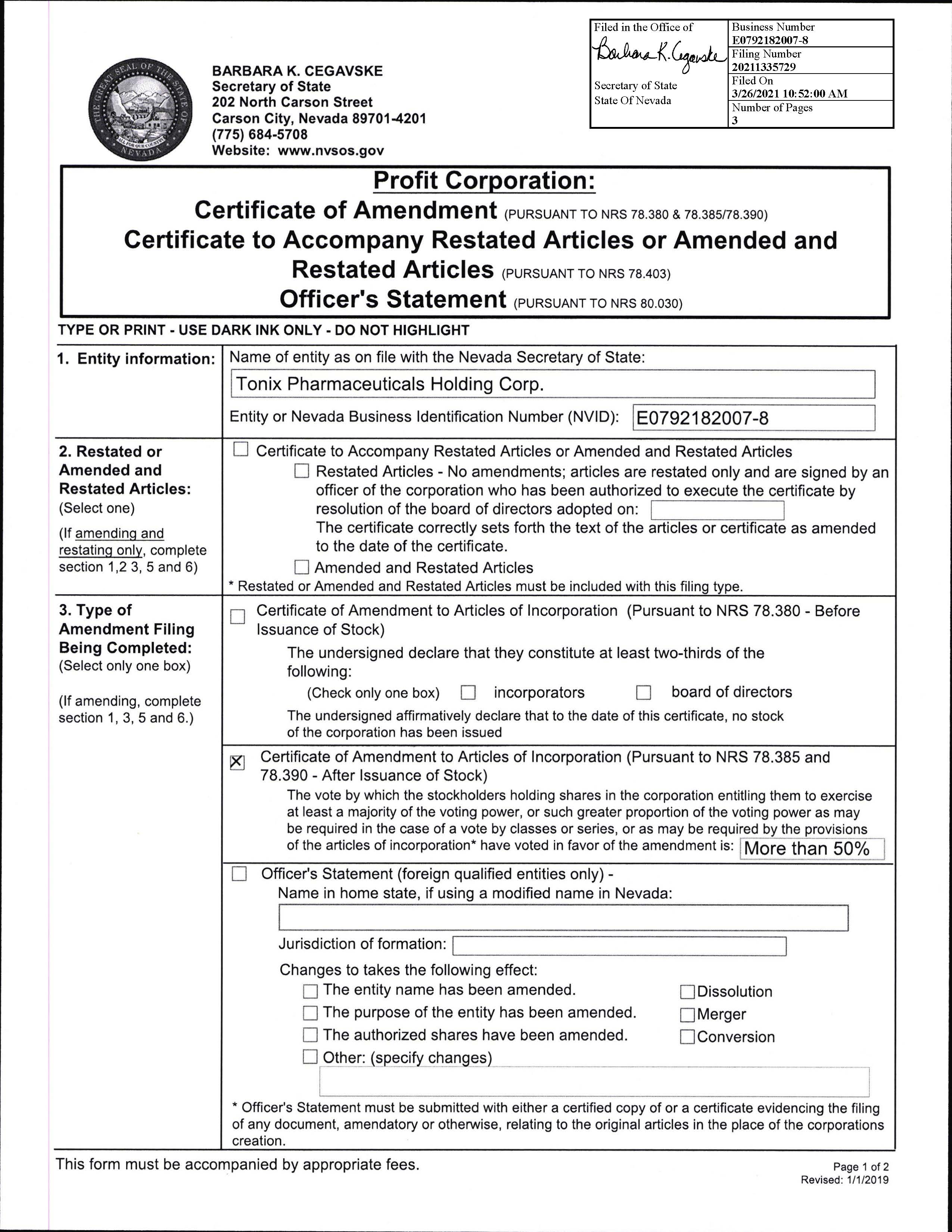 Tonix Pharmaceuticals Holding Corp. 8-K