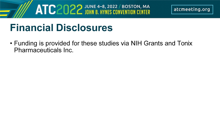 Financial Disclosures • Funding is provided for these studies via NIH Grants and Tonix Pharmaceuticals Inc.
