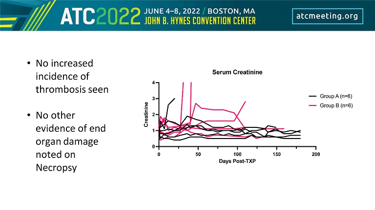 • No increased incidence of thrombosis seen • No other evidence of end organ damage noted on Necropsy