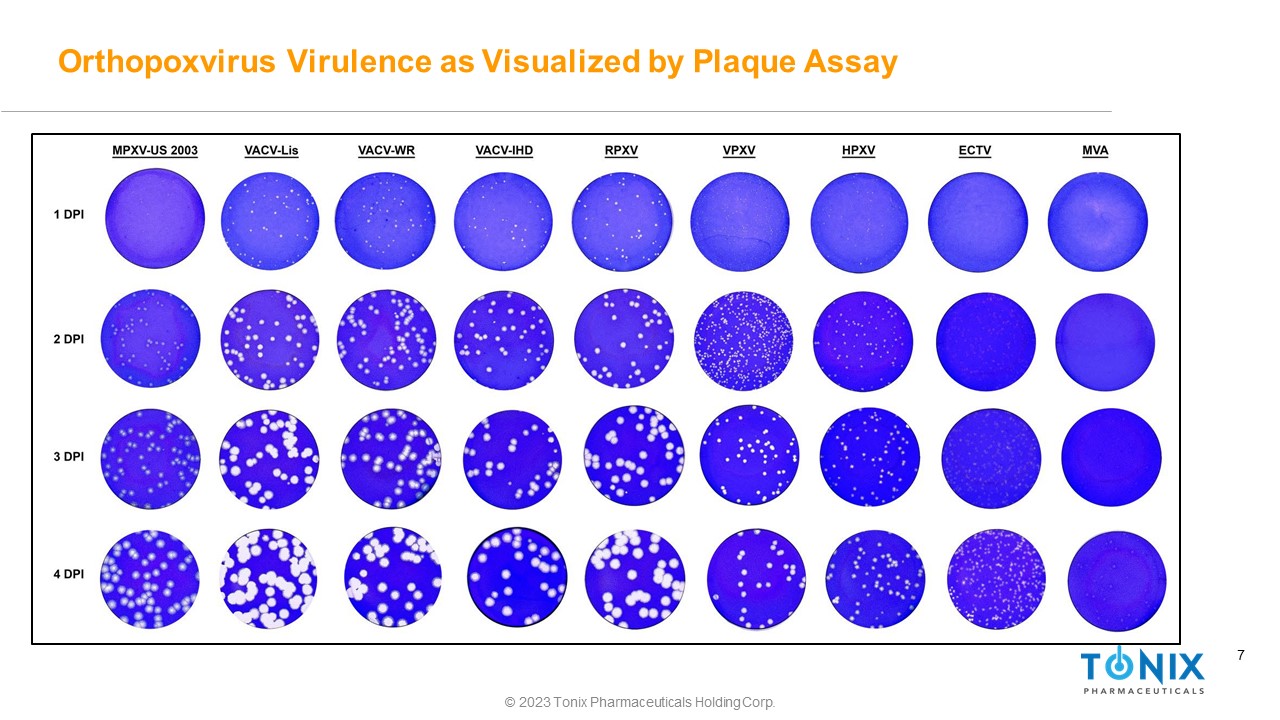 7 © 2023 Tonix Pharmaceuticals Holding Corp. Orthopoxvirus Virulence as Visualized by Plaque Assay