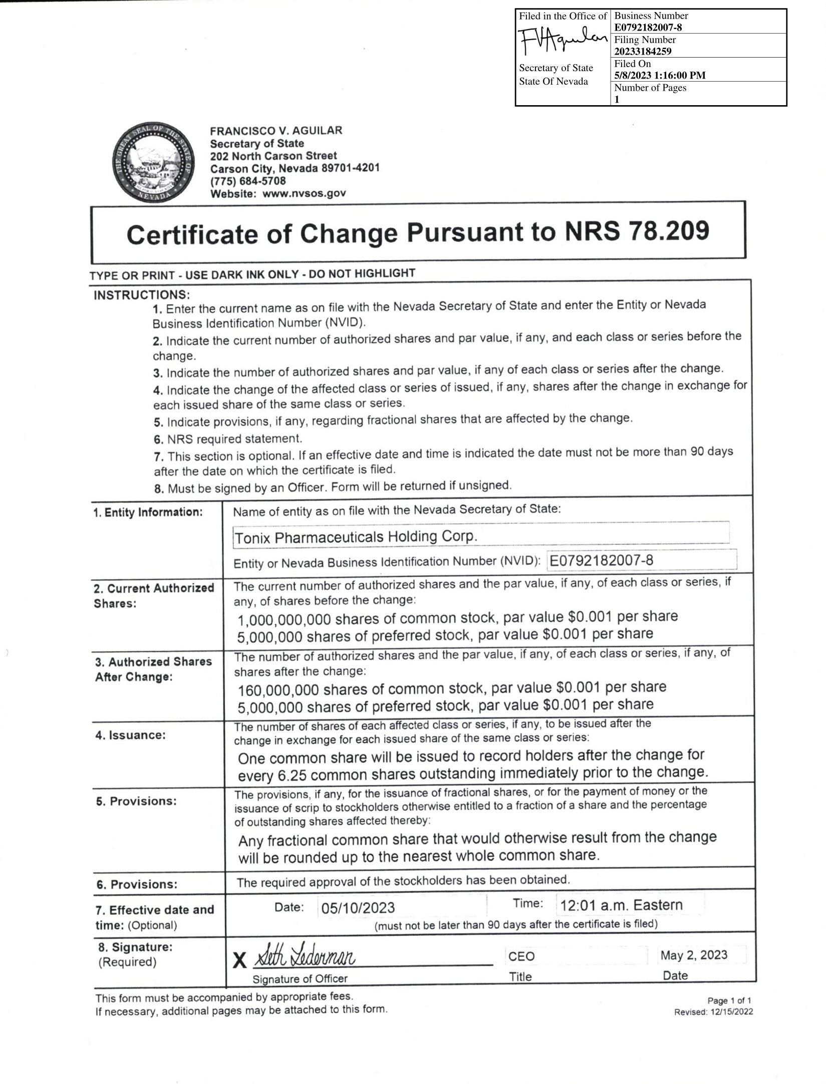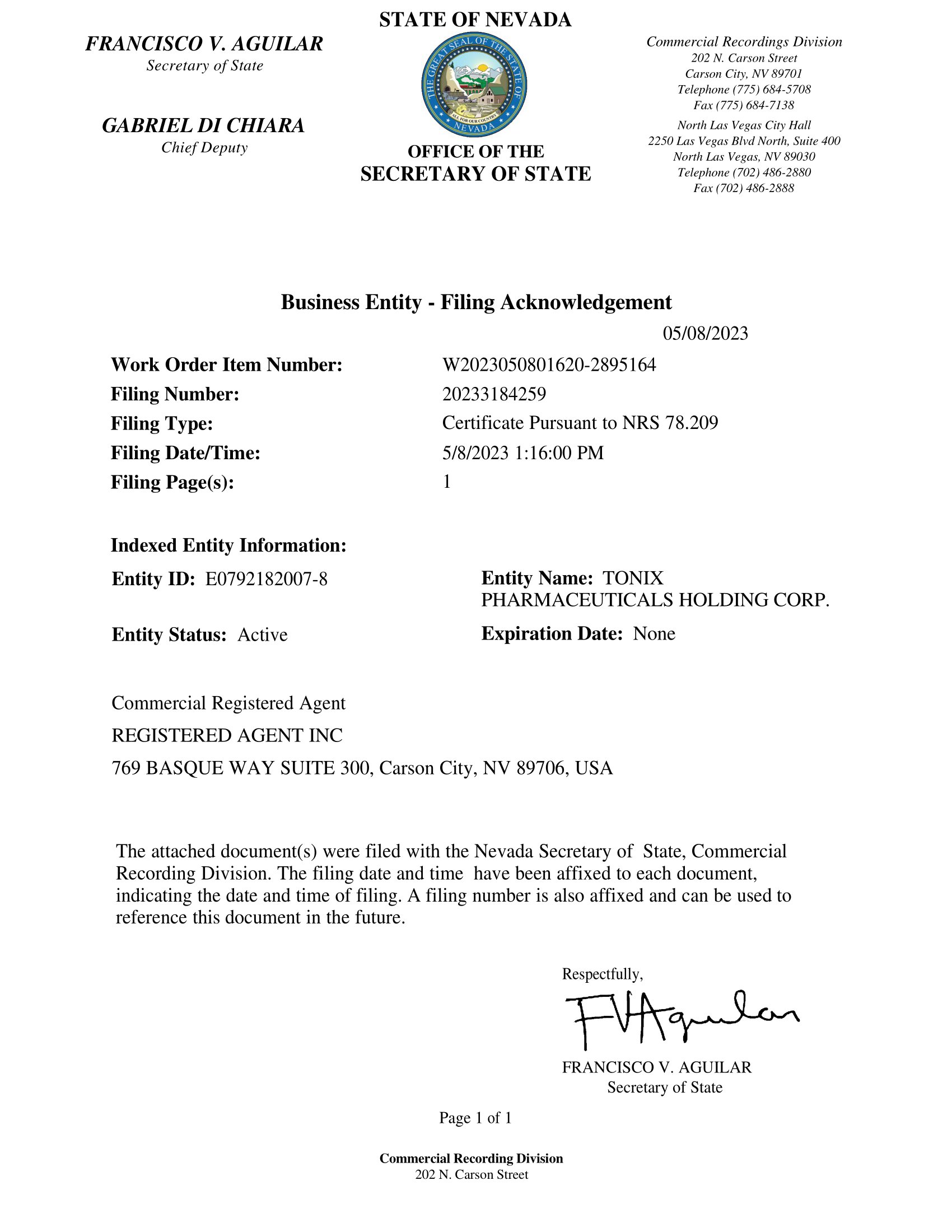 Tonix Pharmaceuticals Holding Corp. 8-K