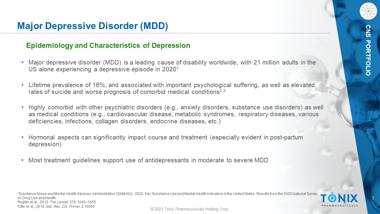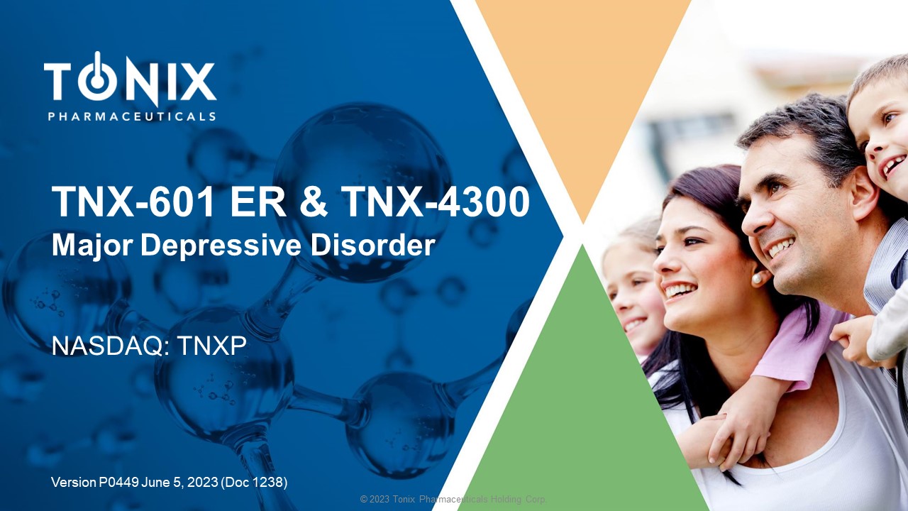 © 2023 Tonix Pharmaceuticals Holding Corp. © 2023 Tonix Pharmaceuticals Holding Corp. TNX - 601 ER & TNX - 4300 Major Depressive Disorder NASDAQ: TNXP Version P0449 June 5, 2023 (Doc 1238)