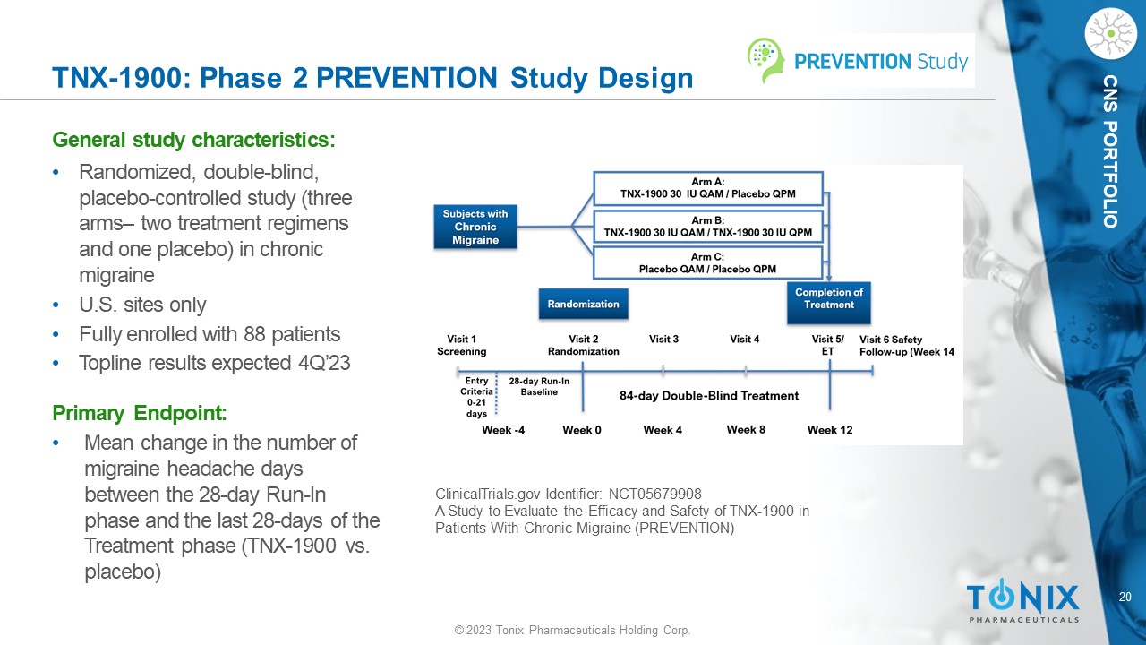 © 2023 Tonix Pharmaceuticals Holding Corp. INVESTOR PRESENTATION NASDAQ: TNXP Version P04 75 August 10, 2023 (Doc 1300 )