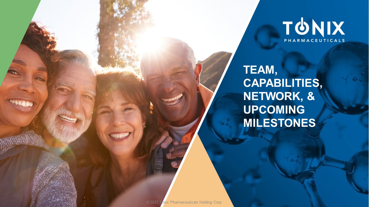 © 2023 Tonix Pharmaceuticals Holding Corp. TEAM, CAPABILITIES, NETWORK, & UPCOMING MILESTONES