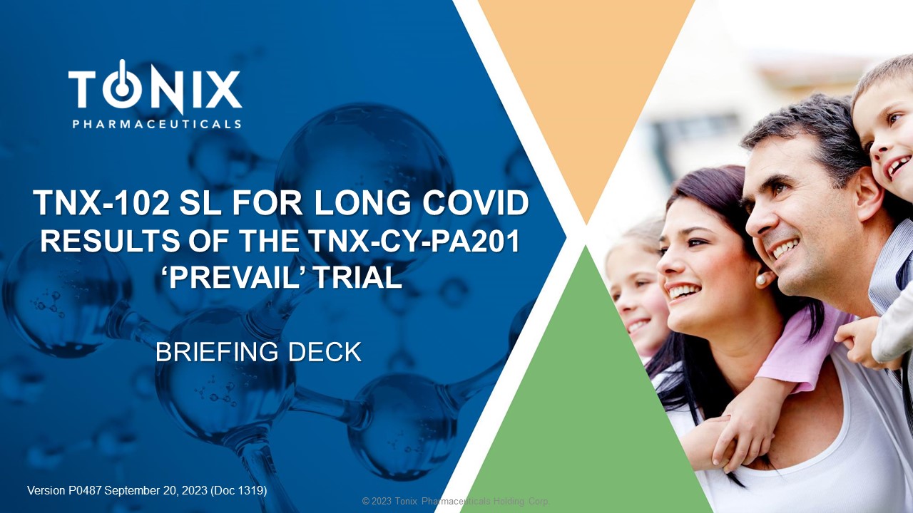© 2023 Tonix Pharmaceuticals Holding Corp. TNX - 102 SL FOR LONG COVID RESULTS OF THE TNX - CY - PA201 ‘PREVAIL’ TRIAL BRIEFING DECK Version P0487 September 20, 2023 (Doc 1319 )