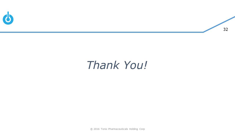 32 © 2016 Tonix Pharmaceuticals Holding Corp Thank You!