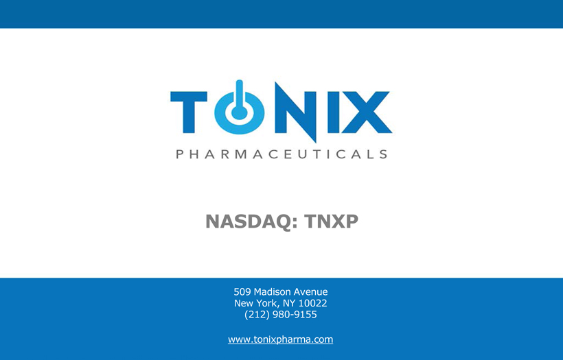 NASDAQ: TNXP 509 Madison Avenue NewYork, NY 10022 (212) 980-9155 www.tonixpharma.com © Copyright 2016 Tonix Pharmaceuticals - Confidential - Do not duplicate or distribute