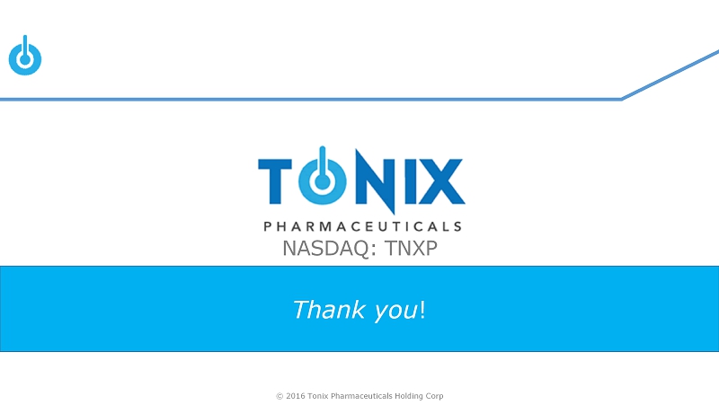 © 2016 Tonix Pharmaceuticals Holding Corp Thank you ! NASDAQ: TNXP