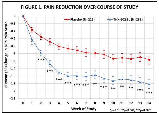 Phase 3 RESILIENT study of TNX-102 SL successfully demonstrated daily pain reduction over placebo (primary endpoint, p = 0.00005)