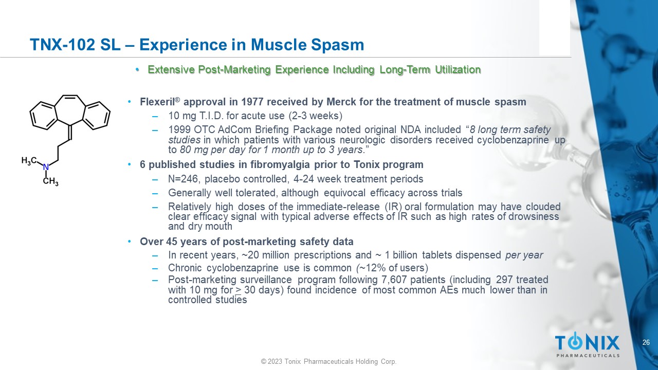 25 © 2023 Tonix Pharmaceuticals Holding Corp. TNX - 102 SL - Differentiation from Oral Forms of Cyclobenzaprine