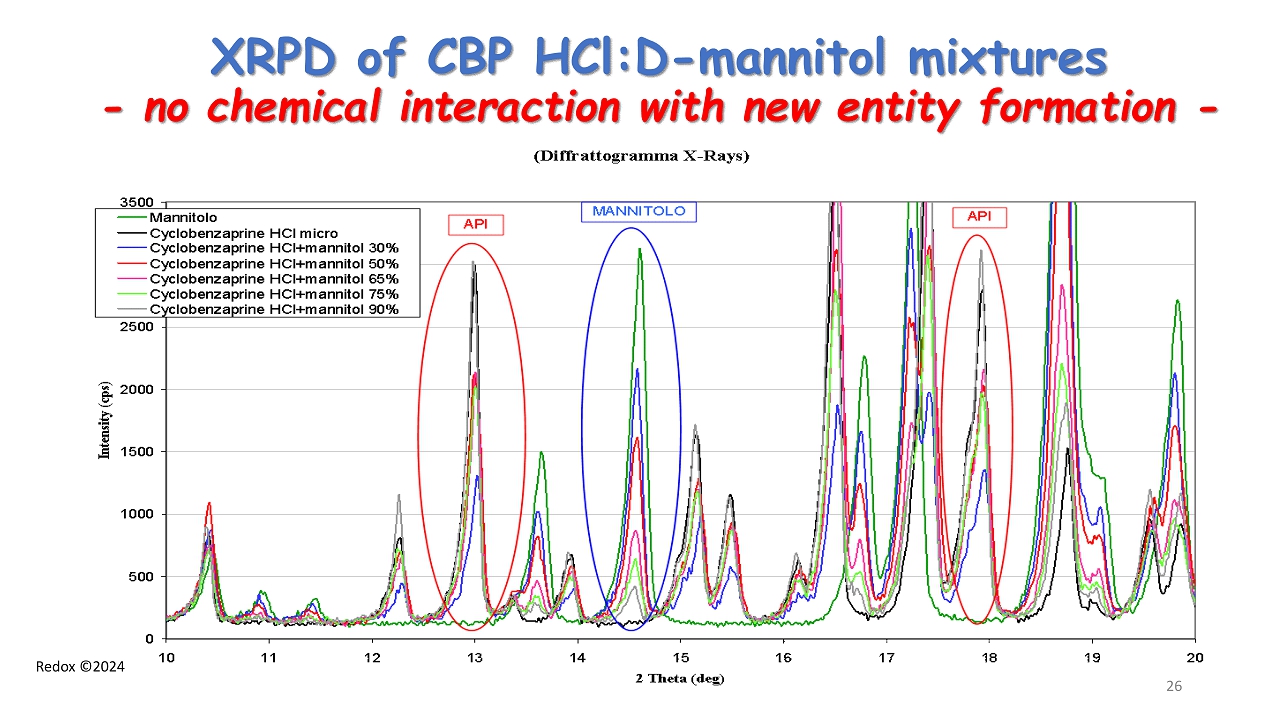 Redox ©2024 XRPD of CBP HCl:D - mannitol mixtures - no chemical interaction with new entity formation - 26