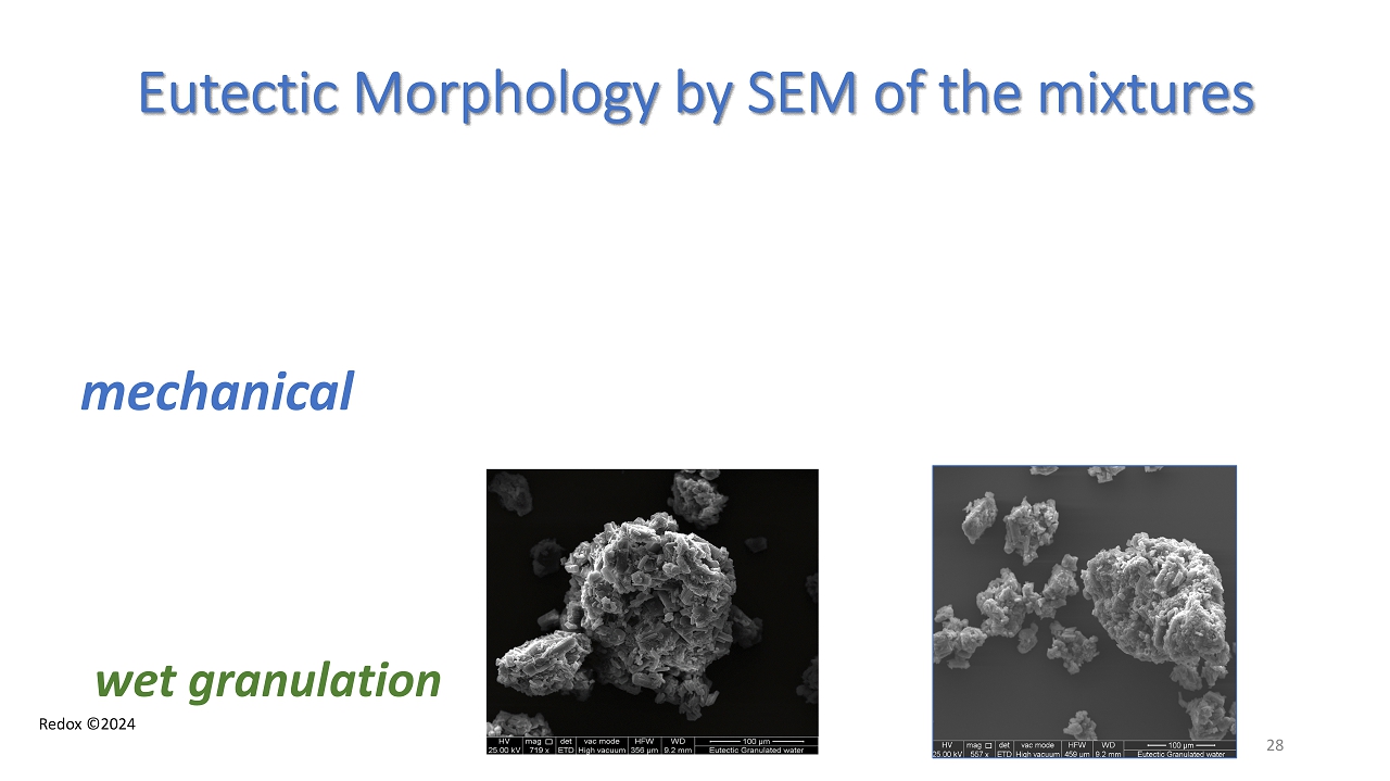 Redox ©2024 Eutectic Morphology by SEM of the mixtures mechanical wet granulation 28