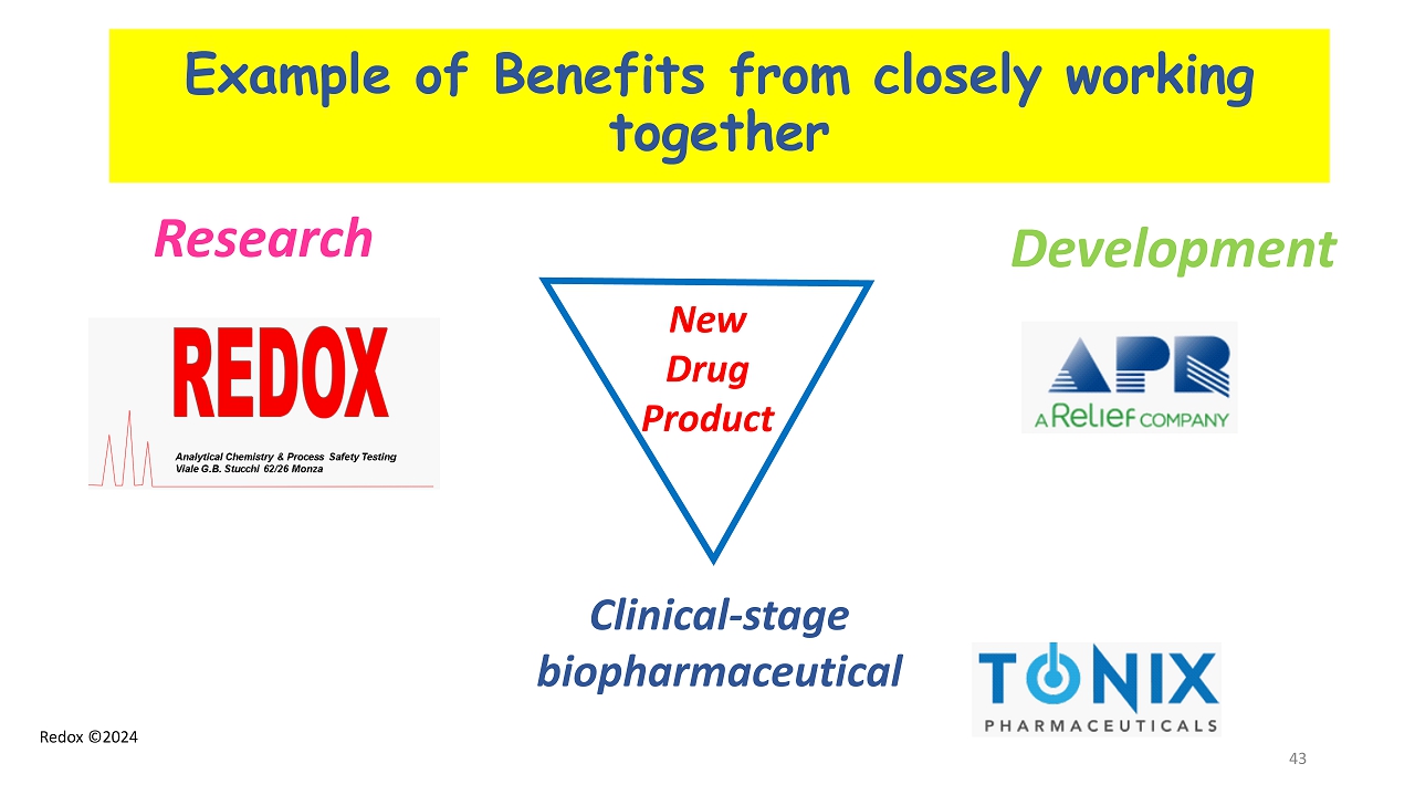 Redox ©2024 Example of Benefits from closely working together 43 Research Development Clinical - stage biopharmaceutic al New Drug Product