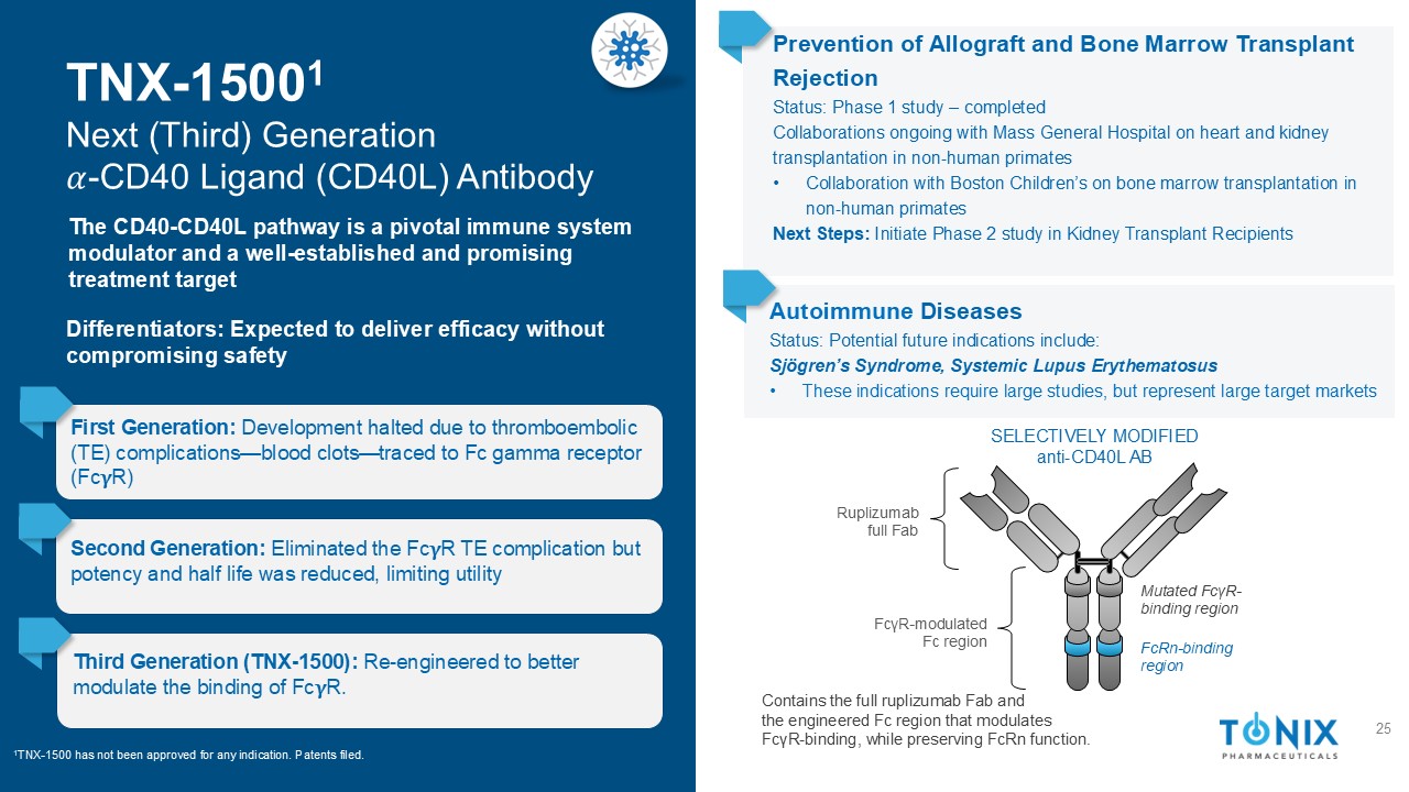 © 2025 Tonix Pharmaceuticals Holding Corp. Immunology & Immuno - oncology Portfolio: Key Candidates 24