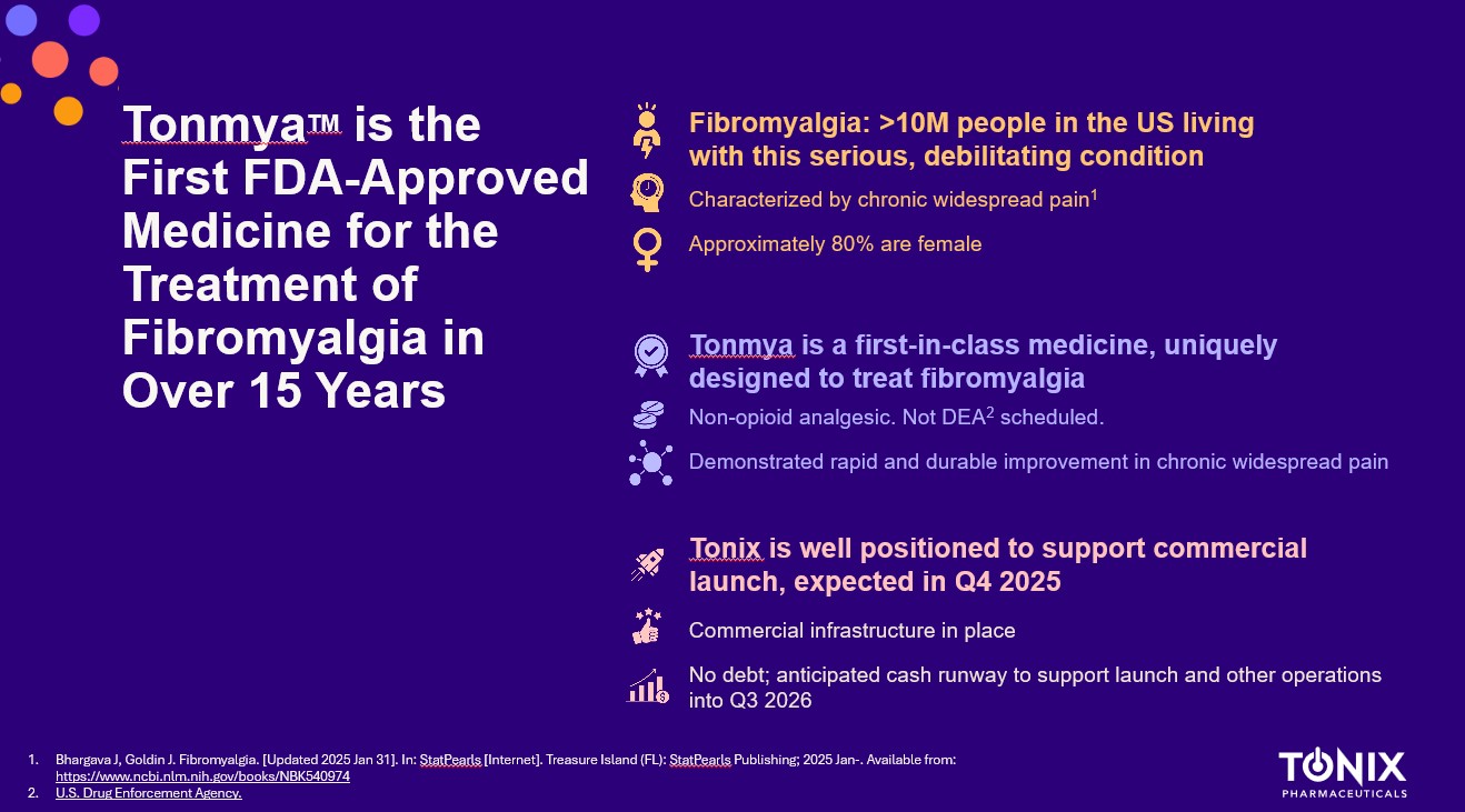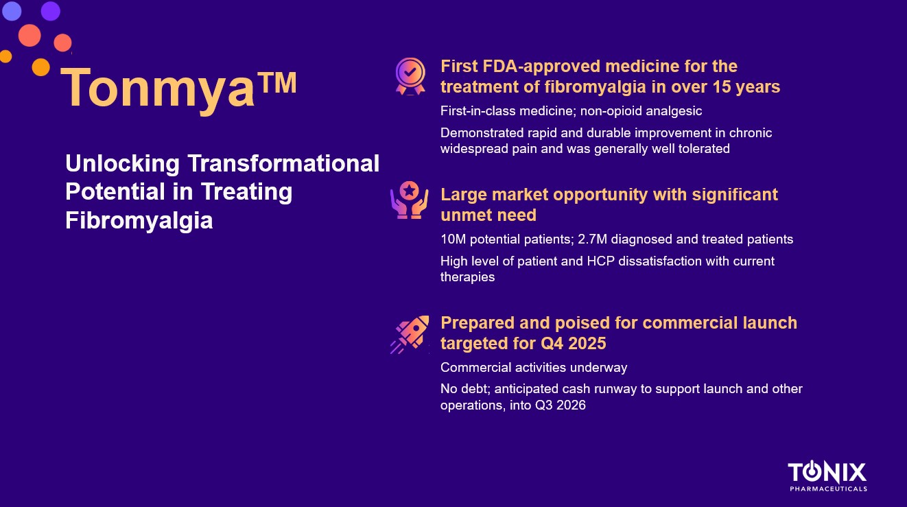 US Approval of Tonmya TM for the Treatment of Fibromyalgia August 18, 2025 NASDAQ: TNXP