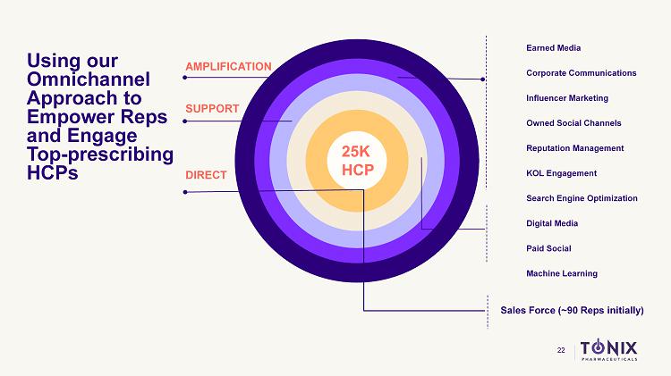 Our precision strategy will drive who and how we target WE WILL GO FROM: Traditional specialty - based decile targeting TO: Hyper - focused 1:1 HCP targeting based on ideal patient types ~ 5% of Fibromyalgia - Diagnosing HCPs Write ~70% of Fibromyalgia Prescriptions 1,2 Total Fibromyalgia - Diagnosing HCP Universe 470K ~25K HCPs 21 1,2 Paid Rx (APLD) in the recent 12 months (Feb’24 to Jan’25); Rx (FACT) in the recent 12 months (Feb’24 to Jan’25); FBM DX 202 0 - 2 025. This 5% also diagnoses 70% of fibromyalgia patients.