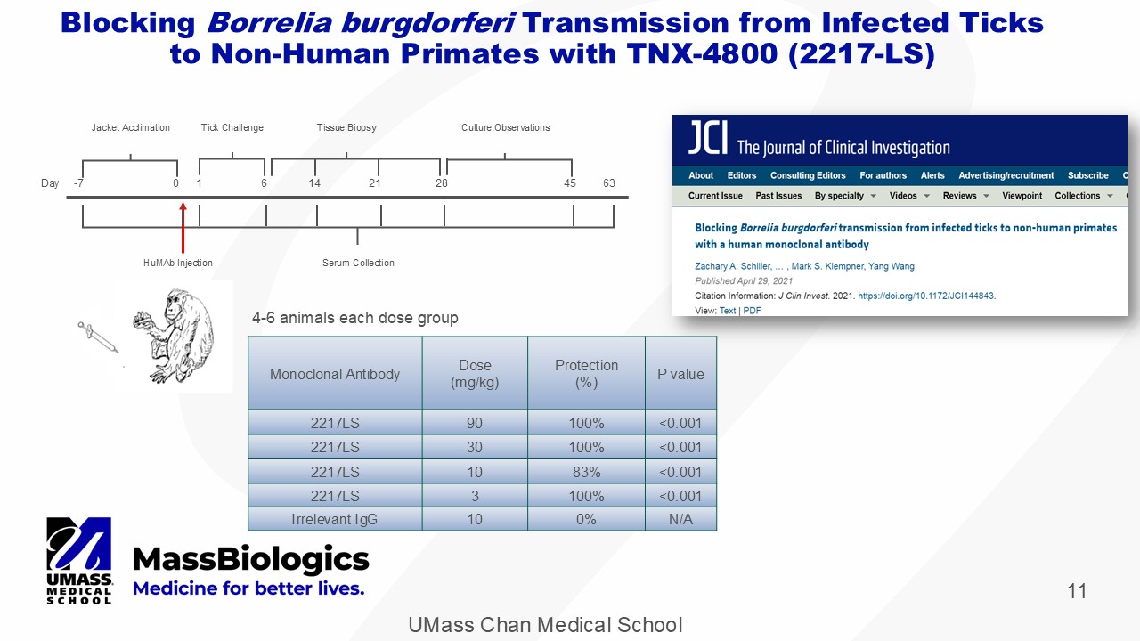 UMass Chan Medical School A Long - Acting Monoclonal Antibody for Seasonal Prevention of Lyme Disease Mark S. Klempner, MD Professor of Medicine